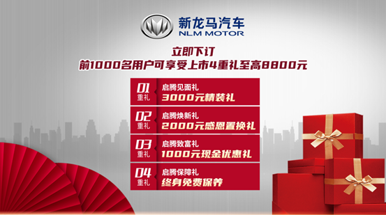 大会现场,新龙马汽车对外公布了四款产品的价格及一系列利好用户的销售政策,启腾N50栏板版官方指导价为3.88万-4.38万,厢式版官方指导价为4.18万-4.68万,仓栅版官方指导价为4.03万-4.53万。启腾N30栏板版的官方指导价为3.56万-4.06万,仓栅版的官方指导价位3.71万-4.21万。启腾M70L官方指导价为4.68万-5.18万。启腾EX80官方指导价为4.88万-5.18万。目前购车,前1000名用户可享受上市4重礼至高8800元,一重启腾见面礼:3000元精装礼,二重启腾焕新礼:2000元感恩置换礼,三重启腾致富礼:1000元现金优惠礼,四重启腾保障礼:终身免费保养。