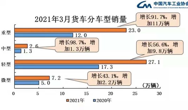 【卡车之家 原创】2021年4月9日,中汽协线上发布3月货车产销数据。