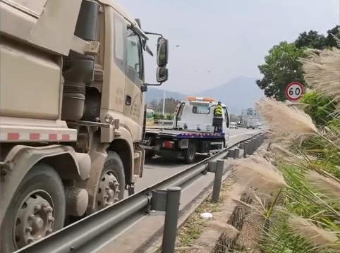 近日,在广东惠州一高速上,一辆泥头车爆胎了。据曝料者表示,随后一辆救援拖车“不请自来”。