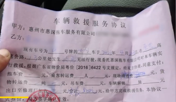 对此,惠州交警高速公路三大队民警称,因为拖车公司是跟高速公路公司签订的合同,所以详细收费明细他们也不清楚,并建议去物价部门投诉。