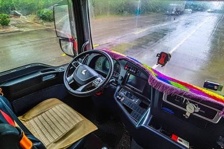 据王彬介绍,这辆汕德卡C7H是540马力牵引重卡,采用黄金动力链总成。“这辆车我用于济南到厦门到物流专线,全程高速,一趟往返3500公里左右。”王彬说,“这辆车到目前已经跑了60万公里,车辆稳定性和出勤率都特别好,故障率低,小毛病也少,而且舒适性很不错,座椅舒适,驾驶室空间大,长途驾驶不会那么累,卧铺宽敞舒服,休息质量很有保证。”