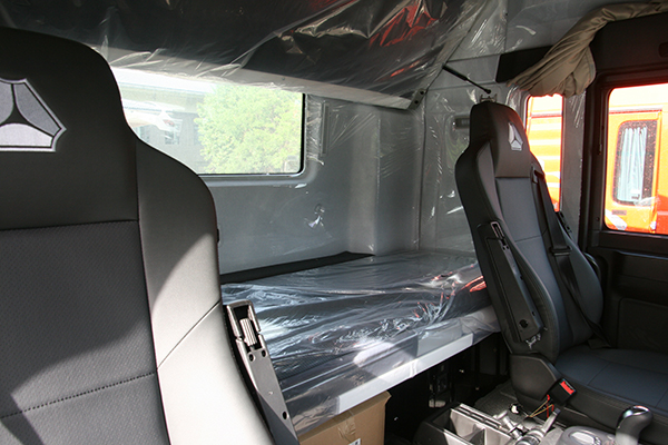 2021版G系汕德卡主打中高端,内饰全新升级。整车仪表台采用原汁原味的曼TG工作台,仪表台下部调整为通体黑色。内饰的颜色上,调整为年轻化的浅灰色。座椅则是采用重汽真皮加针织座椅,用户可选配电加热及通风功能。两侧车门内板由针织升级为皮质护板。卧铺采用更优质的材质,增加舒适度。