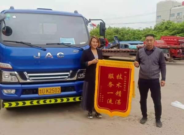 此次以集团客户服务政策对故障车辆进行维修,不仅节约了用户的维修成本,而且节约了用户的时间。为表示感谢,客户特意为胶州江淮服务站送来一面锦旗。