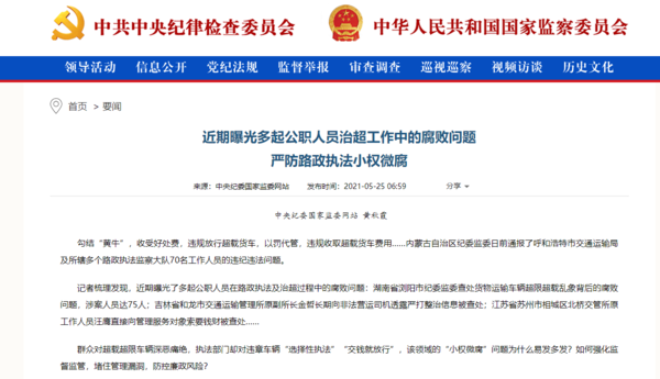“选择性执法”“交钱就放行”,治超过程中还存在公职人员贪腐的行为,让货车司机的生存环境、合法权益受到侵害。但同时,国家多部门的不断曝光、加强严管,将有利于维护货运环境的健康与稳定。(文/高李敏 信源/中央纪委国家监委网站)