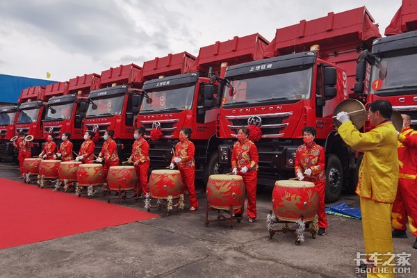 本次交付的另外10台车为杰狮C500国五430马力自卸车8X4,交付给大连昱晟建设工程有限公司,主要的运营场景为砂石料运输。据悉,车辆动力性强、承载力强和安全系数高是这一场景下的用车需求,而红岩工程车在这方面一直久负盛名,这也是大连昱晟选择红岩的重要原因。