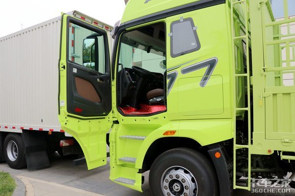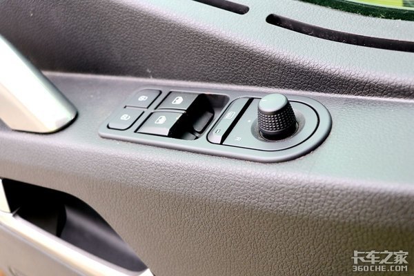 车门的开合角度可达90度,大的开合角度也更方便驾驶员进出驾驶室。同时车门配有电动玻璃升降,车门底部还有照明灯,即便光线昏暗时也能照亮蹬车踏板。车门饰板采用了多种材质拼接,质感出色。