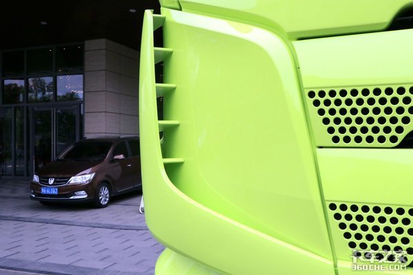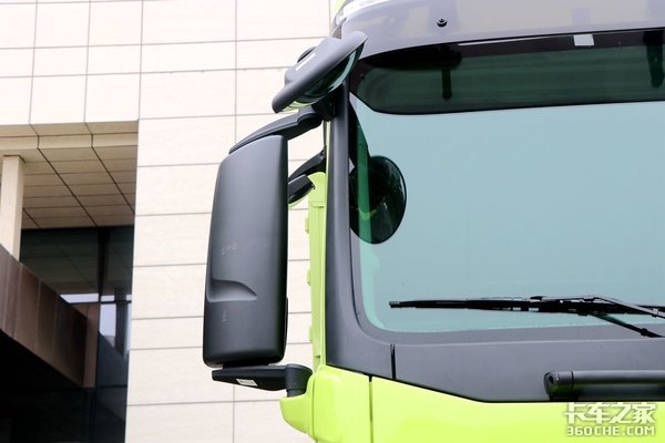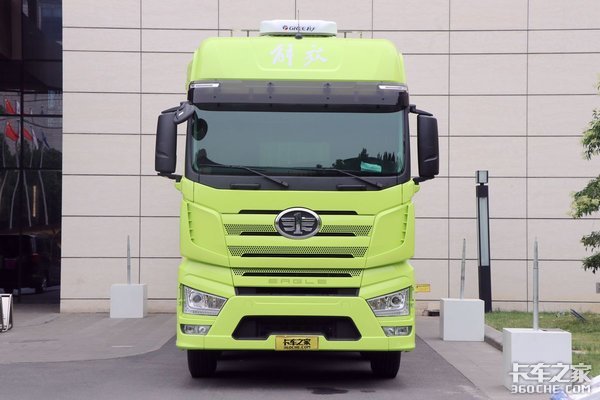 来到斜前方45度位置,整车线条非常饱满,车窗顶部配有遮阳罩可以遮挡一部分阳光;它的大灯灯组与J7牵引车同款,带有透镜和LED日间行车灯,这些配备对车辆的行车安全均有很大帮助。