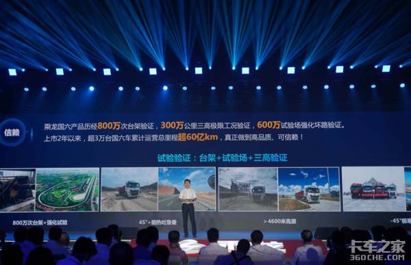 据了解,乘龙国六产品历经800万次台架验证,300万公里三高极限工况验证,600万试验场强化坏路验证。上市2年以来,超3万台国六车辆累计运营总里程超60亿公里。