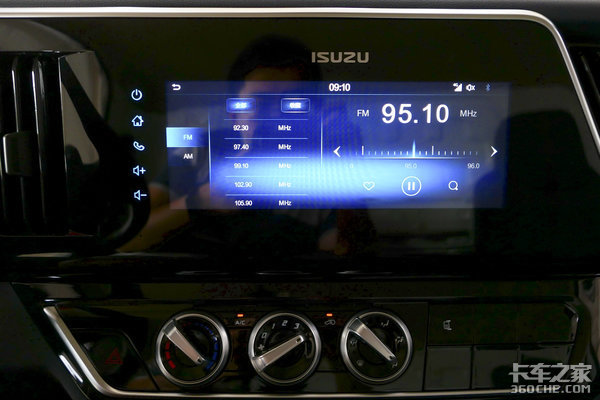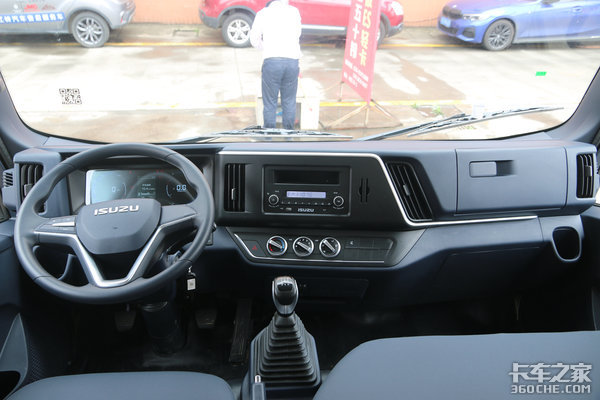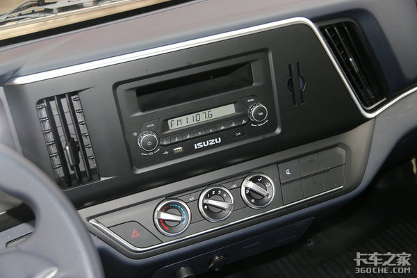 实拍车辆中控为基础配置,除了带有基本功能之外,它整体做工也要比以前的五十铃好上太多。中控台上方布置有收音机和USB接口等,下方则是带镀铬设计的空调系统,看着就特别有质感,而且旋转时的阻尼也很不错。空调右侧布置有一个后视镜加热功能,雨雾天极其实用。