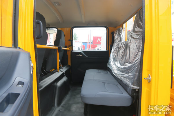 这台翼放EC5双排轻卡配备1880中体驾驶室,准乘6人,拉上同事一起出去工作,或者载上家人出行也是完全没问题。同时得益于驾驶室方正的结构设计,无论是头部还是腿部空间,都得到了有效释放,而且1880驾驶室带来了一定的横向空间,同时满足3人乘坐也是比较轻松,不会感到特别拥挤。