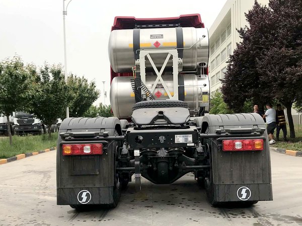 而关于这两个气瓶,根据之前LNG版的德龙X5000使用的气瓶推断,单气瓶容积在1350L,两个气瓶就达到了共2700L的容积,相较常规1000L左右的气瓶来说续航能力可提升近200%。