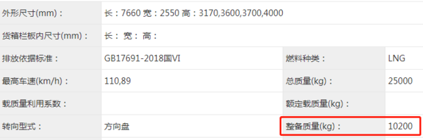 根据申报信息显示,该车车身尺寸长宽仍为7660和2550mm,在外观上也并没有进行优化升级。但因为采用了燃气系统以及加装了两个气瓶的缘故,该车的整备质量达到了10.2吨,有得就有失,因此燃气车一般多用于长途高效标载物流运输市场。
