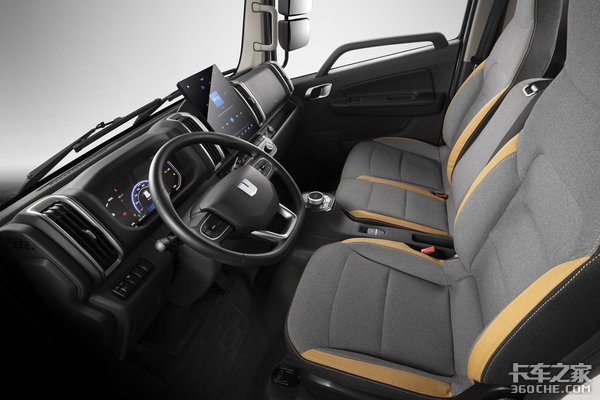 为了提升驾乘舒适性,对座椅进行了从新设计,座椅的坐姿、材质都是偏向于轿车化。用于主副座椅之间没有了传统机械手啥的隔阂,可以实现平躺 “卧铺式”休息。另外座椅的表面还加入了一些黄色的装饰,使得整车更加年轻化。