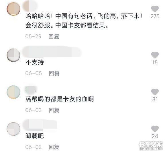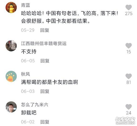 网络上但凡提到货运平台的地方,都充满卡友们对其愤懑不平的控诉和声讨。部分卡友将运费一跌再跌的原因,归结为货运平台的兴起。货运平台的每一步大动作,都带着一种“一将功成万骨枯”的悲壮情怀。