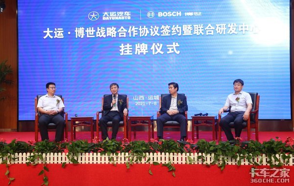 【卡车之家 原创】2021年7月8日,大运汽车股份有限公司与博世(中国)投资有限公司在山西运城隆重举行大运·博世战略合作协议签约,暨联合研发中心挂牌仪式。标志着双方将在全新的阶段、更高的平台共同携手,共创未来。
