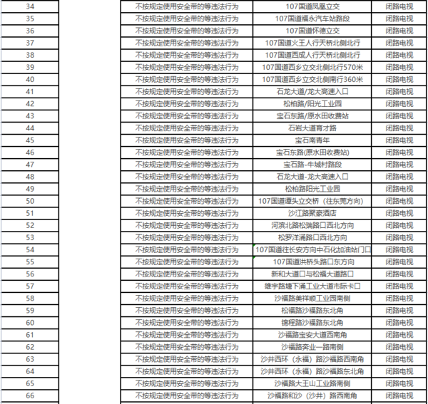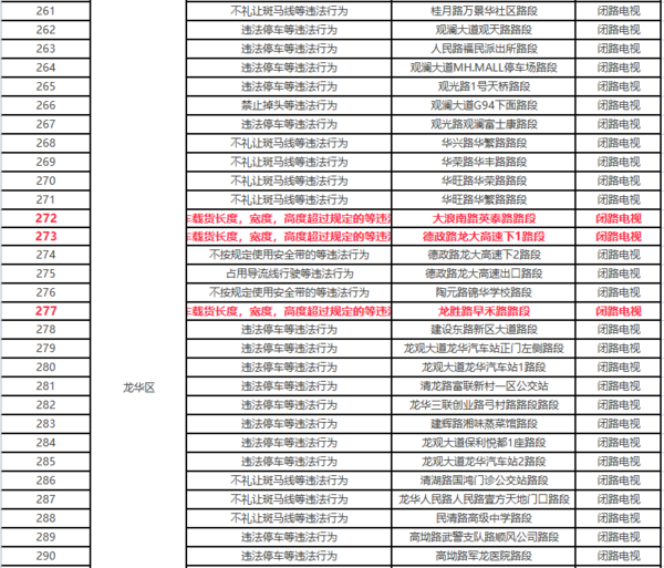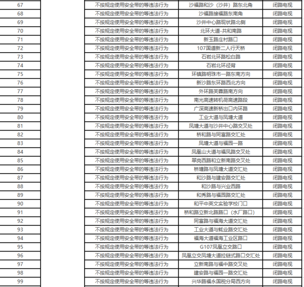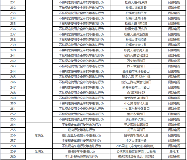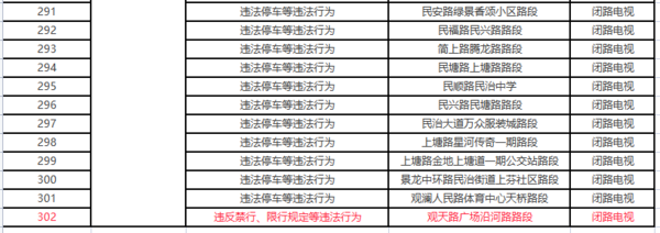 下面,我们来看看监控的具体位置以及拍摄的违法类型: