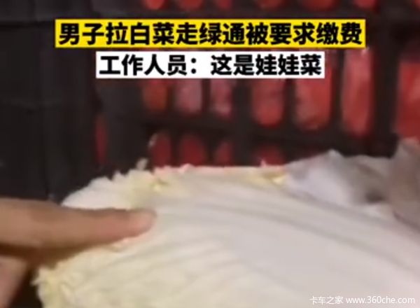 9月9日,广东湛江一位货车司机拉白菜走绿通被要求缴费。根据司机拍摄的视频显示,收费站的工作人员表示该司机拉的是娃娃菜,不在免费目录里,按照要求需要缴纳过路费。