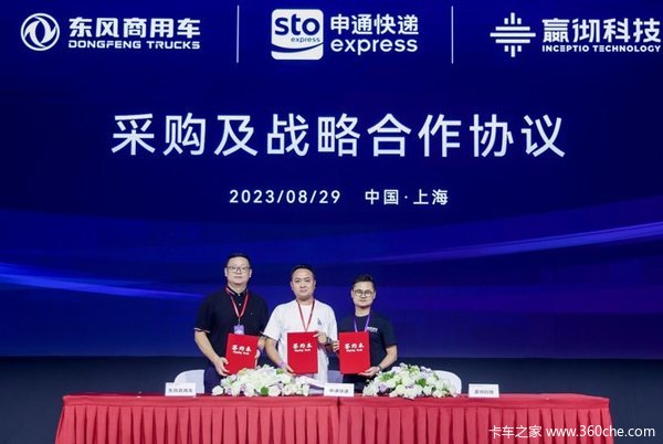 在本次嬴彻科技日现场,嬴彻科技联合东风商用车与申通快递签署首批500台智能重卡采购和战略合作协议,联合中国重汽与中通快运签署首批200台智能重卡采购和战略合作协议,并与德邦快递签署智能重卡战略合作协议。