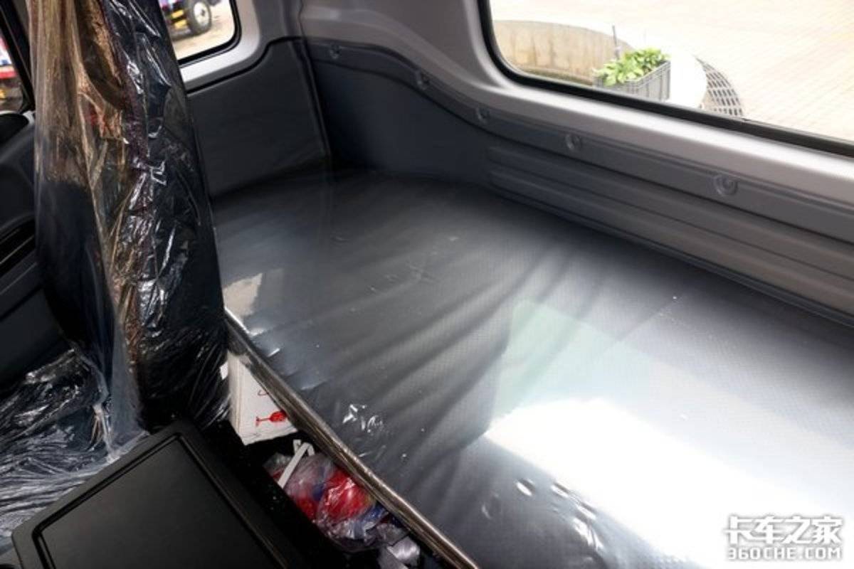 这款车在减震上也做的很好,驾驶室配有减震悬置,还采用了气囊减震座椅,双重减震令车辆即使在路况不好的地段行驶也不会感到颠簸。因为是三座椅布局,这款车只有搭载了一个卧铺,不过卧铺的尺寸还算不错,宽度达到60cm,即使驾驶员体格较大也不会出现躺不下的窘境。