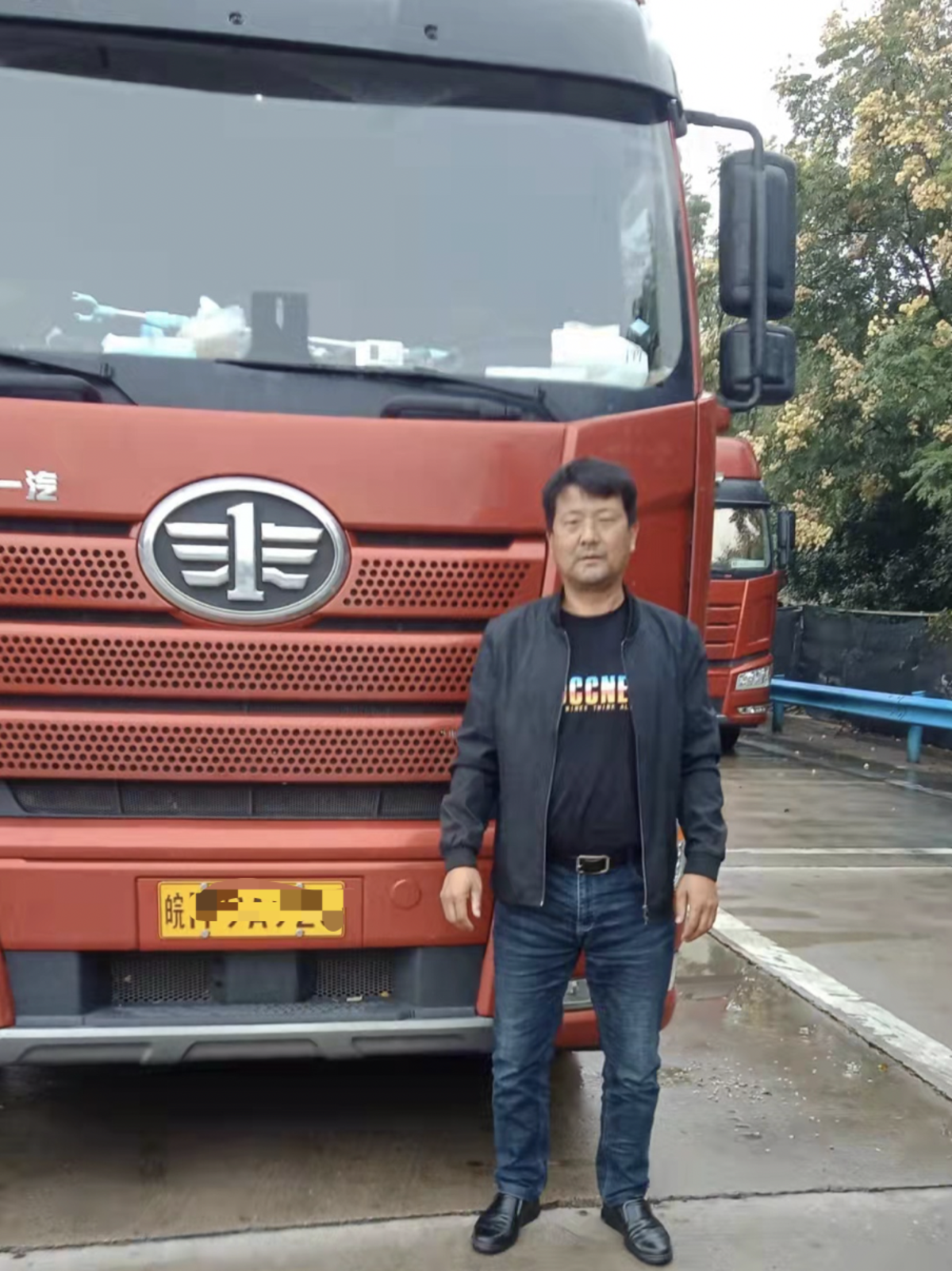 余红权和配载解放动力奥威CA6DM2国六发动机的解放J6P合影