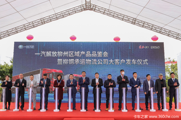 一汽解放汽车销售有限公司总经理、党委副书记张松、广西柳钢物流有限责任公司总经理周骅、一汽解放汽车有限公司柳州分公司党委书记、总经理任典生、广西自治区工信厅汽车处副处长张坤、柳州市柳东新区管委会副主任林艳、广西解放汽车贸易有限公司总经理陈文波以及大客户代表们齐聚一堂,共同见证了这一荣耀时刻。
