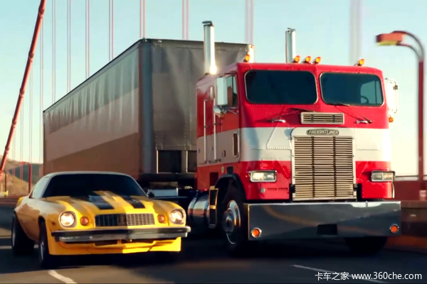 而在2018年美国派拉蒙影业推出的《变形金刚》系列电影的外传《大黄蜂》中,我们可以看到片尾的大黄蜂与查莉分别后追上了一台平头卡车,他们一同行驶在金门大桥之上。从这个场景中,我们可以清晰看到大黄蜂身旁的正是一台福莱纳FLT卡车。虽然影片没有交代这辆卡车的身份,不过这样的表现手法就差直接念擎天柱的“身份证号“了!