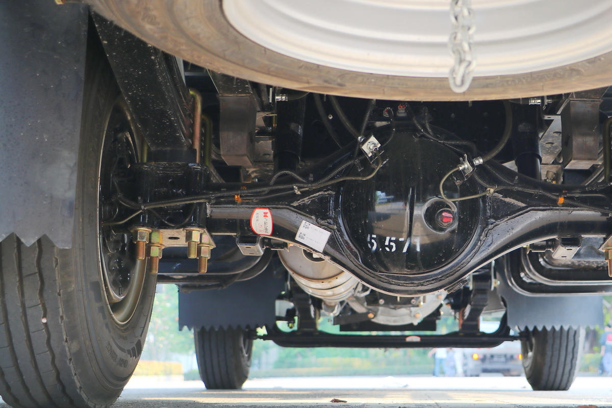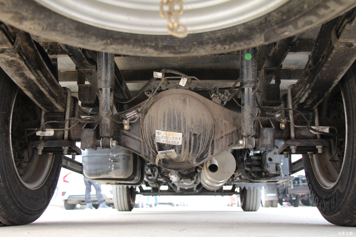 后桥采用的,2.7吨级青特后桥,速比为4.875,当然,用户也可以根据自身的需求选择5.375速比,板簧采用的是前3后3+2片少片簧设计,承载性能与减震性能都不错。