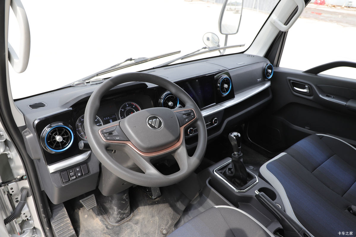 驾驶室采用了轿车风格设计,在内饰方面力求精致,后视镜具备电动调节功能、采用三幅式多功能方向盘,中控上还设有大尺寸的液晶显示屏,通过种种的高档配置让这款小卡的驾驶室看起来很有档次。