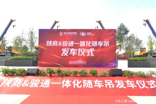 活动现场,在参会嘉宾的注视下,熊礼胜宣布发车,礼炮齐发,一辆辆陕商骏通一体化随车吊缓缓驶出发车区。