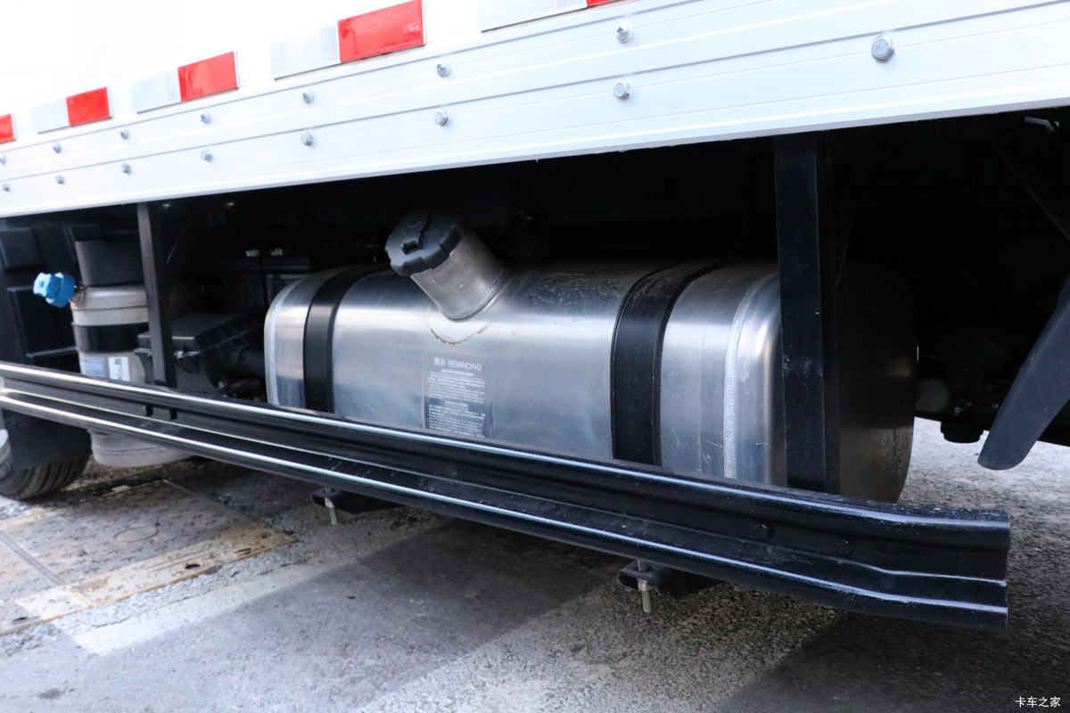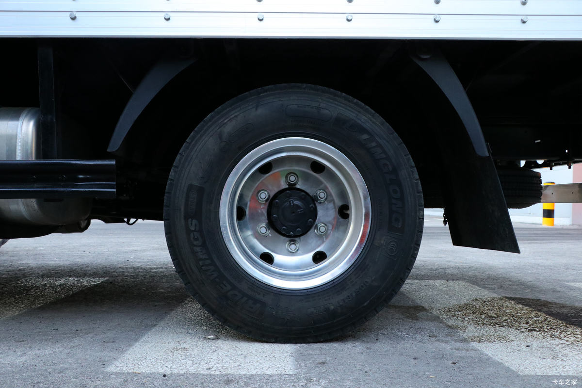 实拍车的轴距为3300mm,车身尺寸为5.995×2.2×3.11米,货箱尺寸为4.16×2.1×2.1米,可以为用户提供18.3方的载量。