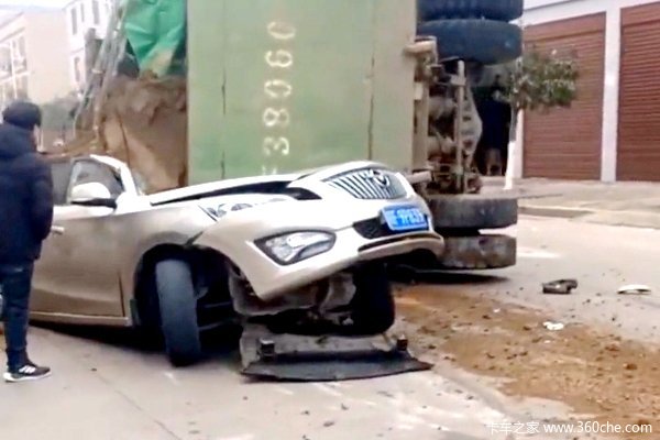 近日,在江西抚州一辆装满泥土的渣土车发生侧翻,不巧正好砸中路过的一辆私家轿车,将驾驶员一侧直接压扁。