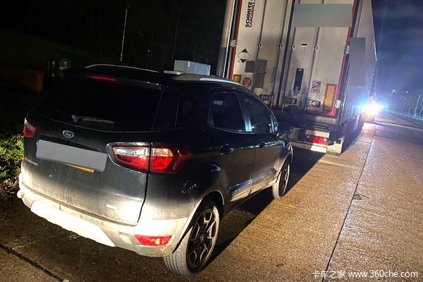 警察随后停车来到卡车旁进行检查,一搭眼竟然没发现人,但当警察来到牵引车鞍座后方时,发现了一名可疑男子正挤在鞍座旁边的狭窄空间里。然后更让人哭笑不得的是,他所驾驶的停在Actros旁边的福特EcoSport(也就是国内的翼搏)也是他盗窃的车辆,因为这台车已报告了失踪。