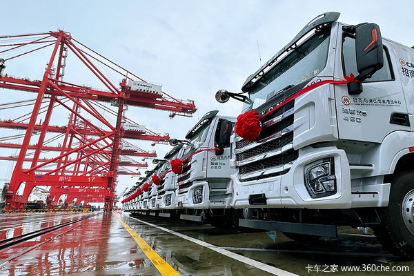 【卡车之家 原创】1月11日,以“致力绿色发展 智创绿港蓝湾”为主题的深圳·招商港口新能源拖车交付仪式在妈湾港顺利举行。在仪式现场,66台上汽红岩杰狮H6充换一体纯电动牵引车成功交付招商港口。不仅是深圳港引入的首批,也是目前国内集装箱港口中最大规模的换电式纯电动牵引车交付应用。