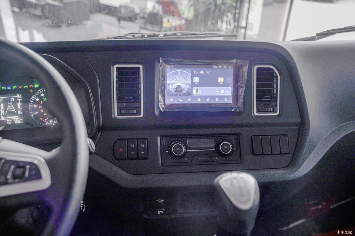 豪曼在卡友的印像里是妥妥的实干派,看它的内饰设计就知道了。功能区集成度较高,各组功能控制单元都整齐的归置在黑色的中控区,按键采用了较大的尺寸,操作方便也不容易发生误按的情况。