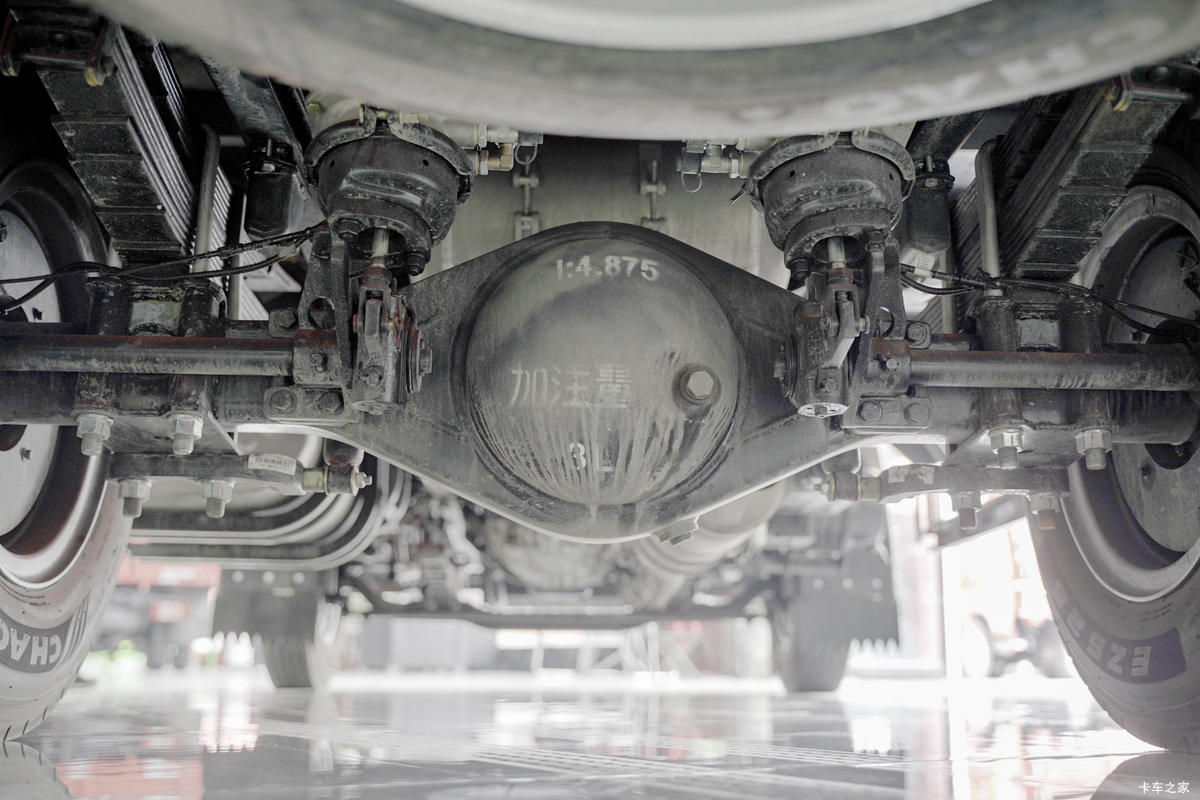 对此这款豪曼先锋H3搭载的是一条2吨级前桥和一条4.2吨级后桥,后桥速比可以选择4.33和4.875,要是经常跑高速、城区可以选4.33,但要是像赵师傅这样的话,4.875的后桥速比会更加适合。