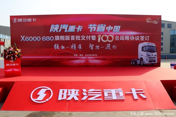 【卡车之家 原创】陕汽重卡,节省中国。2023年3月5日,陕汽重卡X6000 680旗舰版首批交付暨100台战略协议签订在河南省商丘市顺利举行。来自陕重汽销售公司、产业链、陕重汽郑州营销区以及豫东主要渠道代表、当地用户代表等百十人齐聚商丘鸿阳有限公司,共襄盛举。