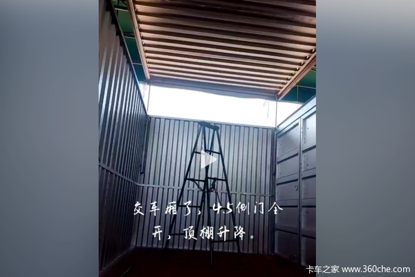 【卡车之家 原创】我近期在网络社交平台发现,有厂家在展示、售卖一种蓝牌轻卡上的特殊货厢,这种货厢左右4开门,而且顶板可以电动液压举升,这是什么操作?