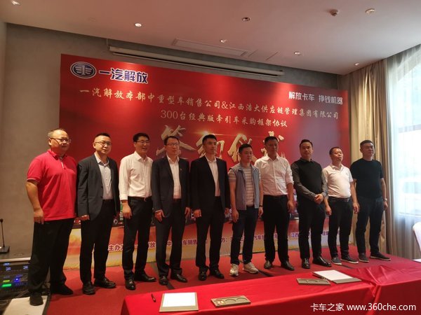 2023年10月25日,一汽解放与江西浩大供应链管理集团有限公司“300台J6P经典版牵引车采购合作框架签约仪式”在江西萍乡隆重举行。江西浩大供应链管理集团有限公司董事长陈建勇、江西浩大供应链管理集团有限公司总经理廖淀军、江西浩大供应链管理集团有限公司党支部书记刘本金、江西浩大供应链管理集团有限公司分厂厂长欧阳方亮、一汽解放本部中重型车销售公司高级主任管理师杨天明、高安市海鑫汽车贸易有限公司董事长何海军、一汽解放本部中重型车销售公司赣湘鄂地区部部长徐绍熙、萍乡三鑫达汽车贸易有限公司董事长徐定河、一汽解放本部中重型车销售公司赣湘鄂地区部营销主管姚金池等出席本次活动。