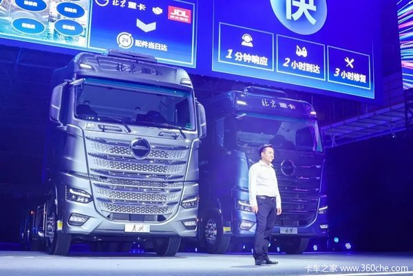 此外在售后服务上,北京重卡优选行业成熟的网络渠道,网络规模达到全国1000多家,长三角、珠三角、京津冀东边城市50公里设置服务站,青海、西藏、新疆、西部地区150公里设置服务站,救援2小时内100%到达;设有常州、天津、西安、成都四个分拨中心和1000家配件直投储备网点,实现配件当日达、半日达,全面保障了用户的运营无忧。