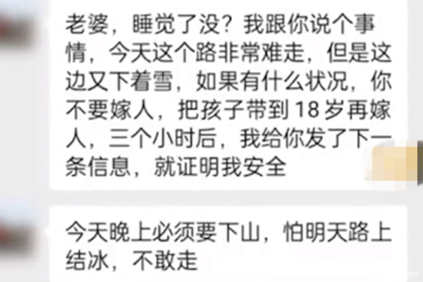 天又黑,路又窄,弯道也多,雪还越来越大,而旁边就是悬崖。路非常不好走,卡友怕发生什么危险,就提前给妻子发去了微信。