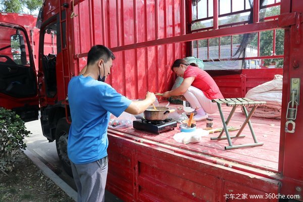 上路之后,卡嫂要帮着丈夫看路;丈夫开车容易犯困,要给他们作伴、聊天;装货的时候,卡嫂也要帮着看装卸有没有问题,装完要帮忙盖雨布、看货物有没有捆牢;为了省钱,每个卡嫂都会在车上为丈夫支起电饭锅,算着时间就为让丈夫到了目的地赶快吃口热饭。