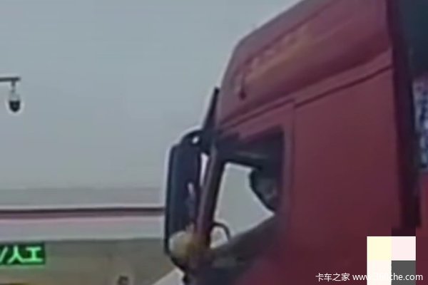 前几天,在沈塘收费站入口,一辆大货车进收费站时插队,车上的卡友突然拿出水果示意!