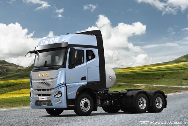 运价持续走低,油价居高不下,燃气重卡成为时下降本增效热门之选。江淮星耀X7 6×4 LNG牵引车搭载康明斯全新一代燃气机,可输出580马力,最大扭矩2500牛米,动力轻松应对各种复杂工况。低风阻驾驶室、低滚阻轮胎和高度可调导流罩等优化匹配,整车气耗更低。加上液力缓速器、1500L超大气瓶、续驶里程超1500km、选装后气囊悬架、主驾通风加热气囊座椅+副驾气囊座椅、驾驶室碰撞试验达到欧洲标准、卡嘉车联网系统等功能和配置,江淮星耀X7 6×4 LNG牵引车一定能成为各位卡友创富之路上的得力好帮手。