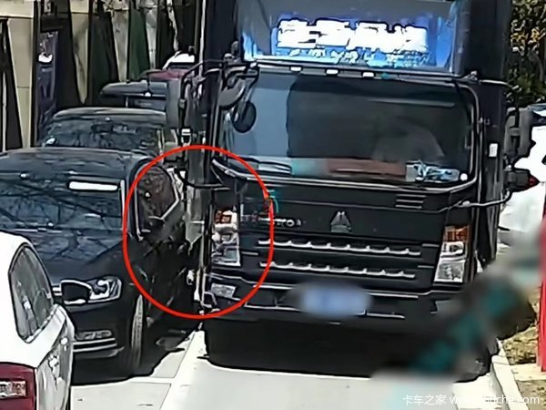 最近在安徽毫州,一位卡车司机在狭窄的路上行驶时,不慎剐蹭到了旁边的一辆黑色轿车。