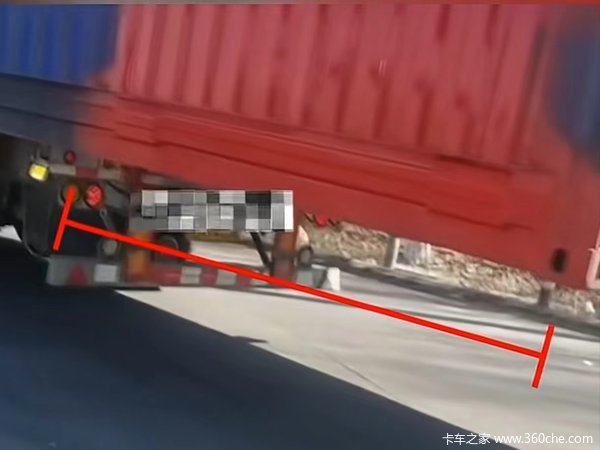 该车正常货箱长16米,但这辆货车超长了2-3米。不仅挡住了车牌,晚上行驶时后面的车灯也被挡住,安全隐患太大。