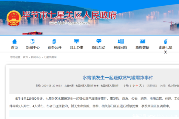近日,据报道,5月18日22时50分许,七星关区水箐镇发生一起疑似燃气罐爆炸事件。事发后,应急、公安、消防、市场监管、住建、工信等相关部门迅速前往处置救援。