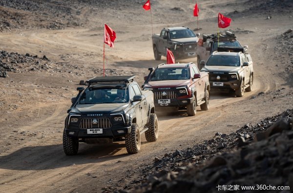 而博格华纳适时四驱系统、前中后三把差速锁、蠕行模式、7种驾驶模式(标准、经济、运动、沙地、泥地、雪地、岩石)、前后铁质保险杠更是让车辆如虎添翼,各色地形通过无虞,在大漠戈壁中肆意驰骋。除越野皮卡及其改装车型表现亮眼外,车队中的乘用皮卡也凭借出色的动力性能与四驱系统表现出不俗的越野能力,顺利穿越大海道。