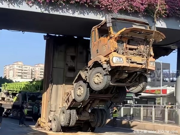 11月12日,在广东广州,一辆泥头车直接冲上了天桥。