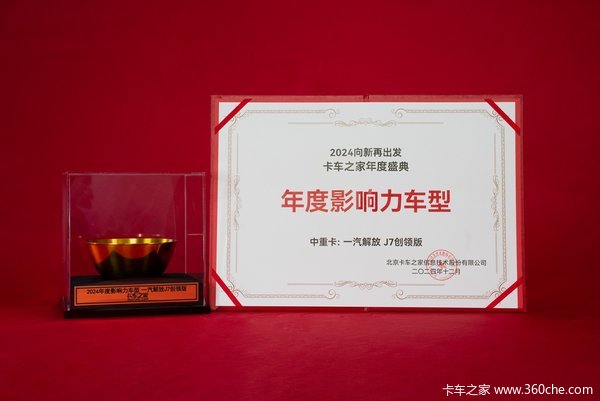2024年12月6日,《2024向新再出发 卡车之家年度盛典》正式开幕。一汽解放J7创领版牵引车凭借其优异的性能和高涨的用户关注度,荣获卡车之家2024年度影响力中重卡车型大奖!