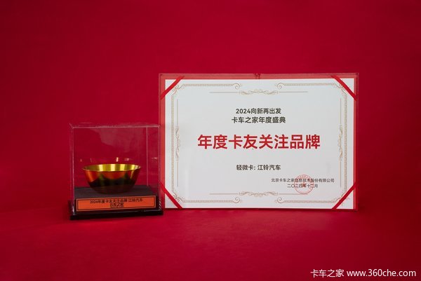 在卡车之家2024年“向新再出发”年度盛典上,江铃汽车凭借其轻微卡车型卓越的性能和广泛的市场认可度,荣获“年度卡友关注品牌”奖项。这一荣誉不仅彰显了江铃汽车在商用车领域的领先地位,也为其未来的发展注入了新的动力。